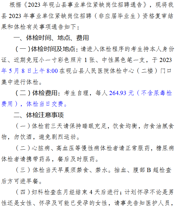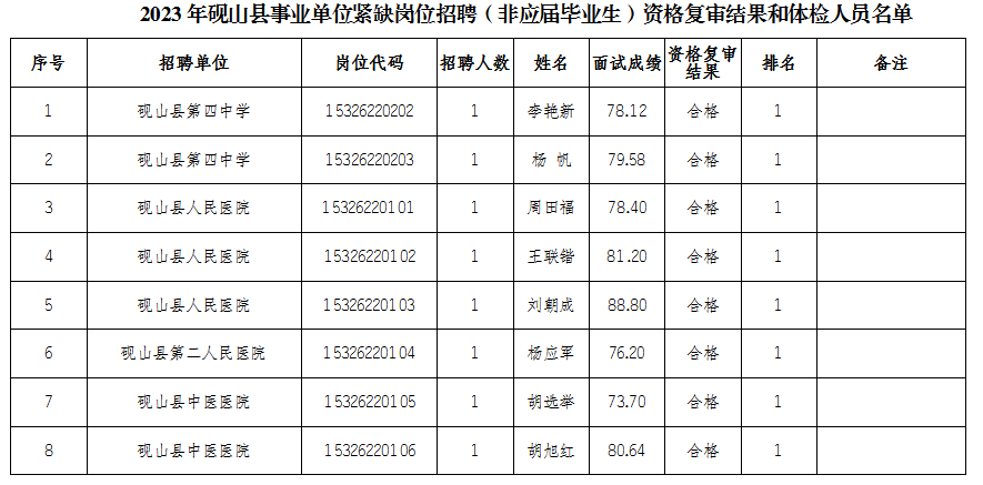 2023年硯山縣事業(yè)單位緊缺崗位招聘(非應(yīng)屆畢業(yè)生)資格復(fù)審結(jié)果及體檢有關(guān)事項的通告