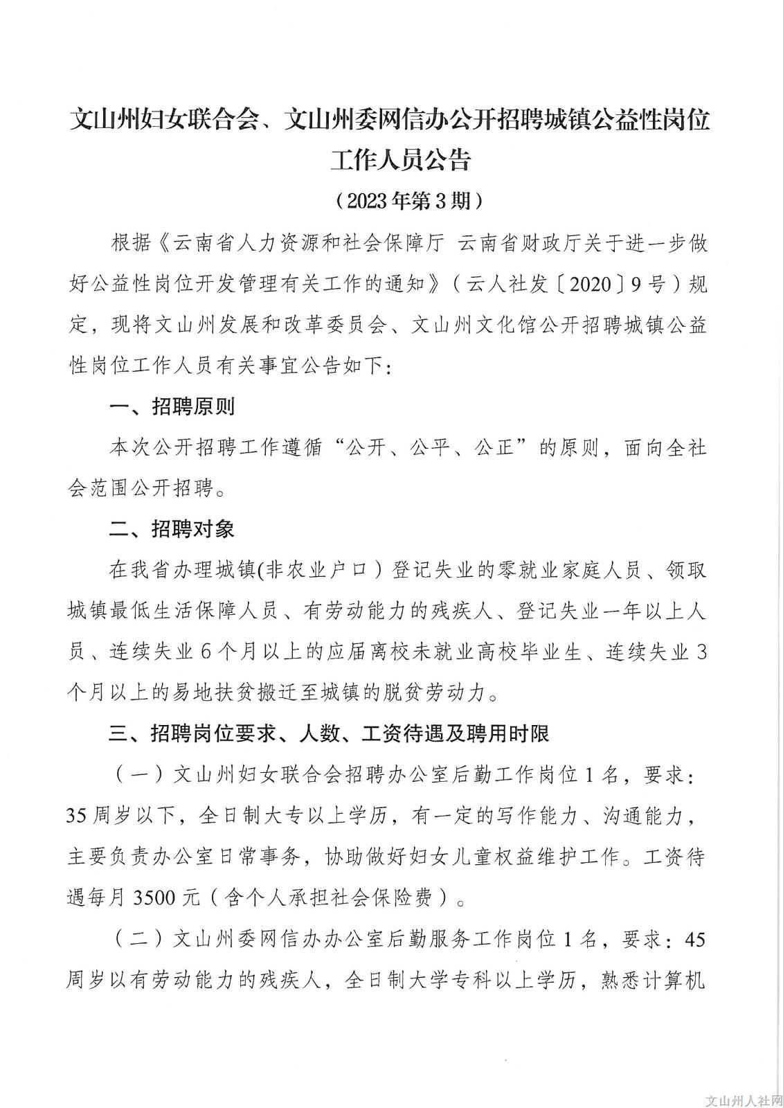 2023年文山州婦聯(lián)、州委網(wǎng)信辦招聘公告