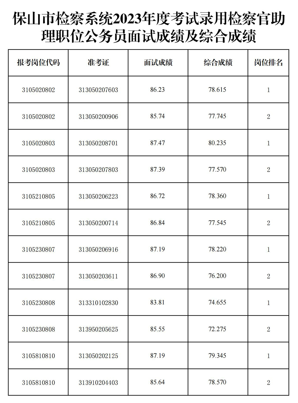 附件:保山市檢察系統(tǒng)2023年度考試錄用檢察官助理職位公務員面試成績及綜合成績