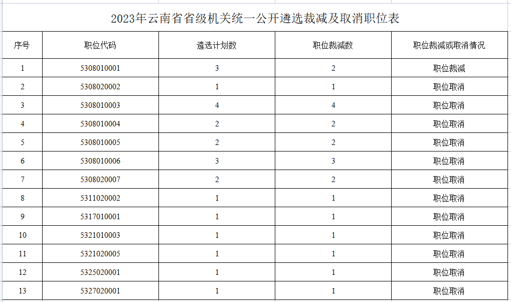 附件:2023年云南省省級機(jī)關(guān)統(tǒng)一公開遴選裁減及取消職位表