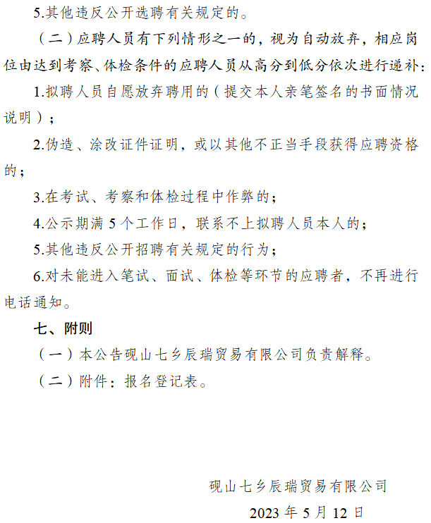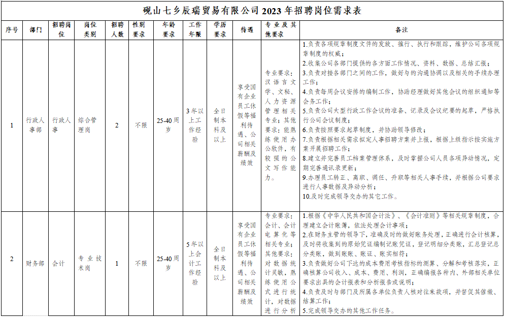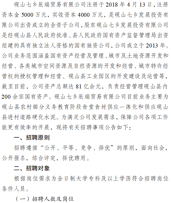 硯山七鄉(xiāng)辰瑞貿(mào)易有限公司2023年公開招聘工作人員的公告