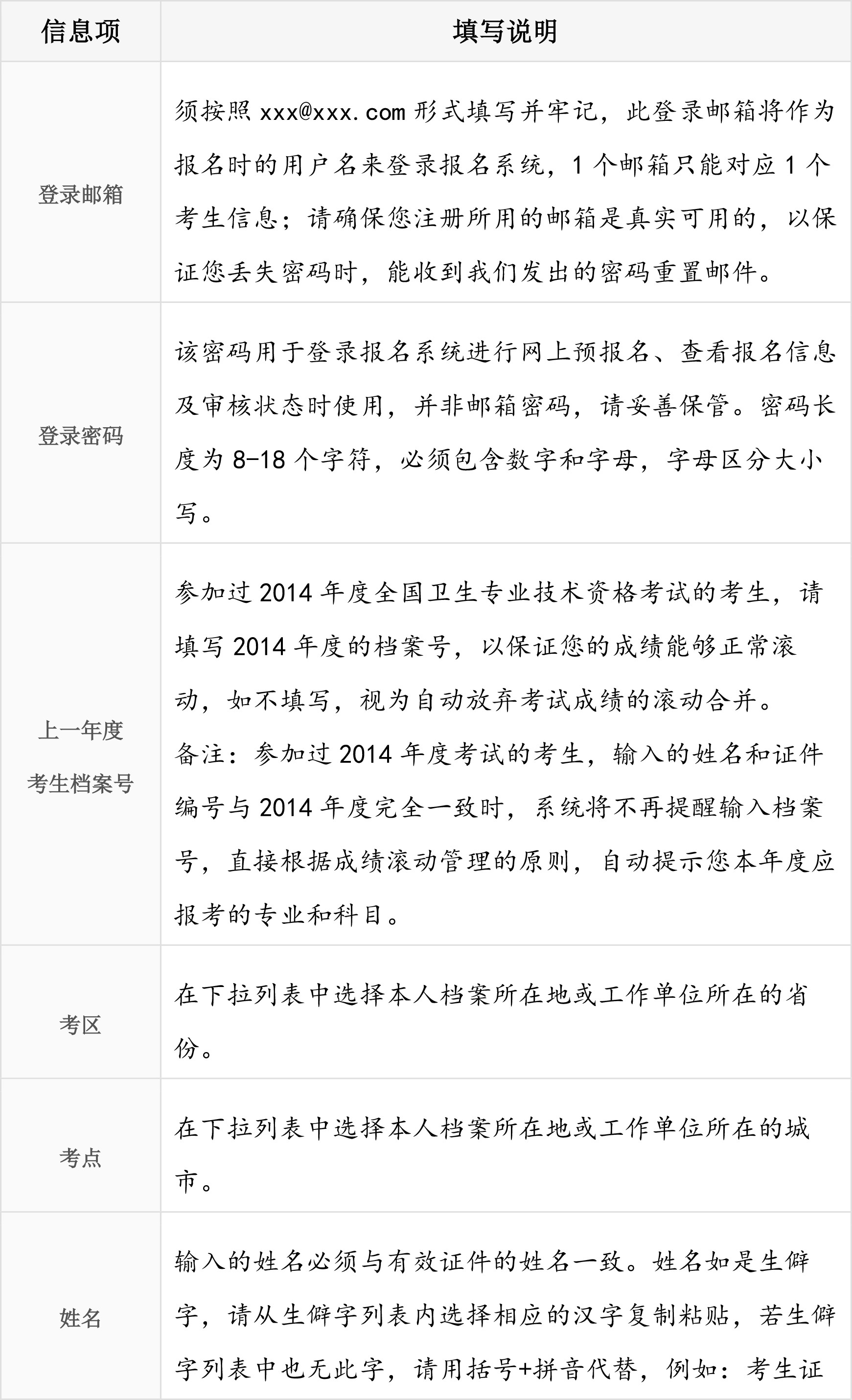 2015年度全國(guó)衛(wèi)生專業(yè)技術(shù)資格考試填表說(shuō)明