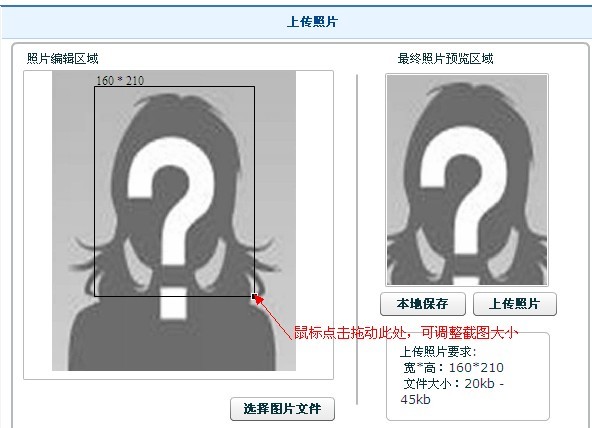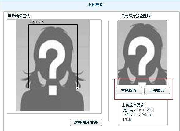 照片調(diào)整完畢后,上傳照片,并可本地保存修改后照片。見下圖