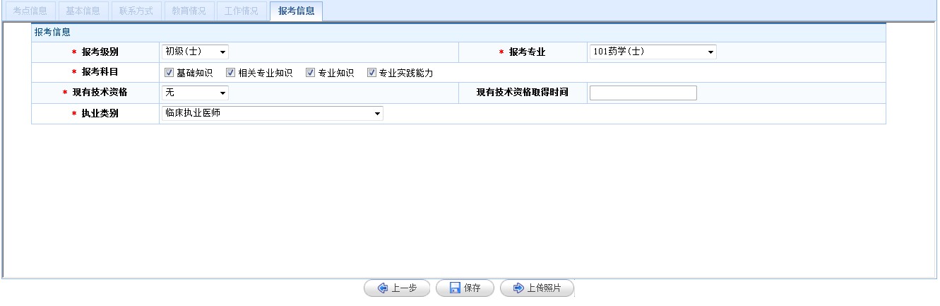 a)報(bào)考級(jí)別、報(bào)考專業(yè)、報(bào)考科目、現(xiàn)有技術(shù)資格、執(zhí)業(yè)類別為系統(tǒng)標(biāo)準(zhǔn)代碼,只能從下拉菜單中進(jìn)行選擇錄入,不能手動(dòng)填寫;