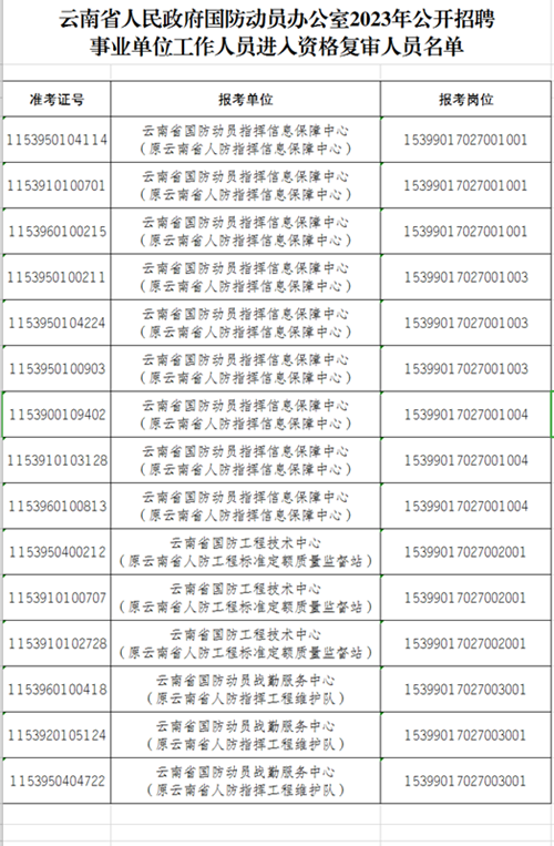 根據3月16日發(fā)布的《2023年云南省人民政府國防動員辦公室公開招聘人員公告》,現(xiàn)將資格復審人員名單及相關事項公告如下: