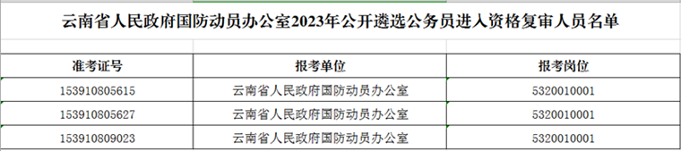 附件:云南省人民政府國防動員辦公室2023年公開遴選公務員進入資格復審人員名單