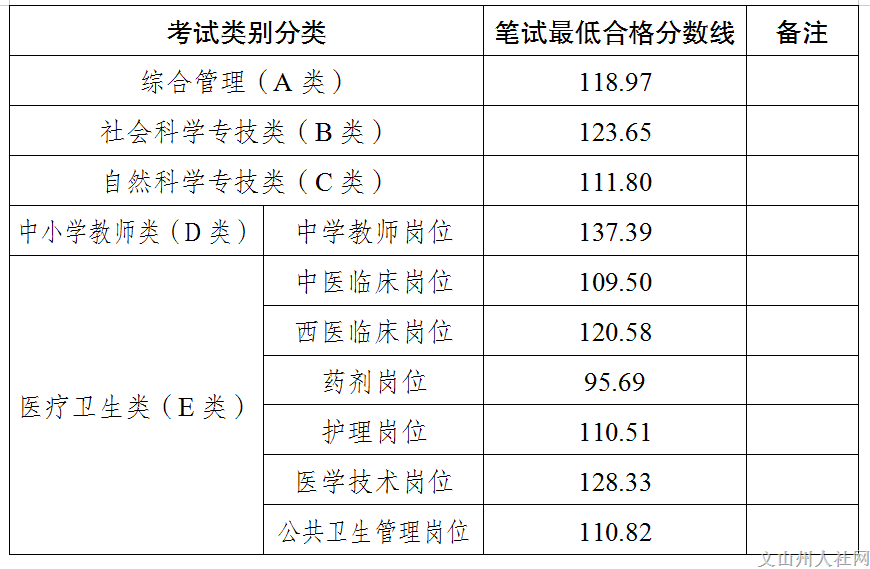根據(jù)《2023年文山州事業(yè)單位公開招聘工作人員通告》要求,按照所有參加筆試人員有效成績總平均分的80%(保留到小數(shù)點后兩位),劃定筆試最低合格分數(shù)線。2023年文山州事業(yè)單位公開招聘工作人員筆試成績最低合格分數(shù)線確定如下。
