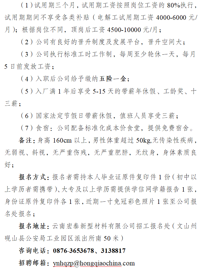 硯山縣產(chǎn)業(yè)園區(qū)企業(yè)發(fā)展急需用工招聘通告