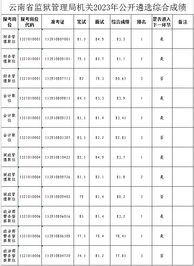 云南省監(jiān)獄管理局機(jī)關(guān)2023年公開遴選 公務(wù)員(人民警察)綜合成績公告及后續(xù)工作通知