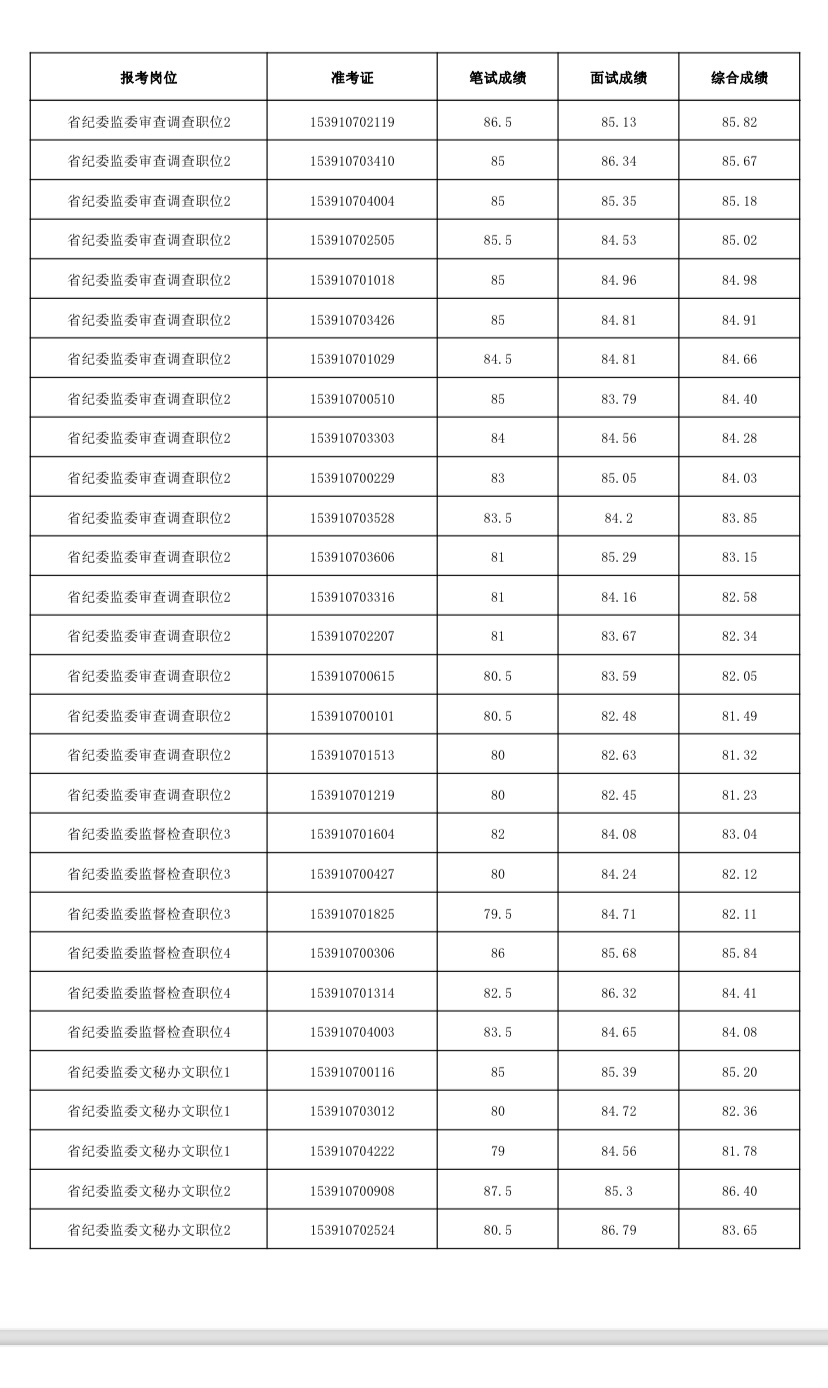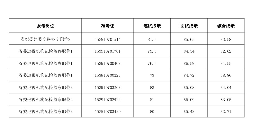 附件:中共云南省紀(jì)委云南省監(jiān)委2023年公開遴選公務(wù)員綜合成績