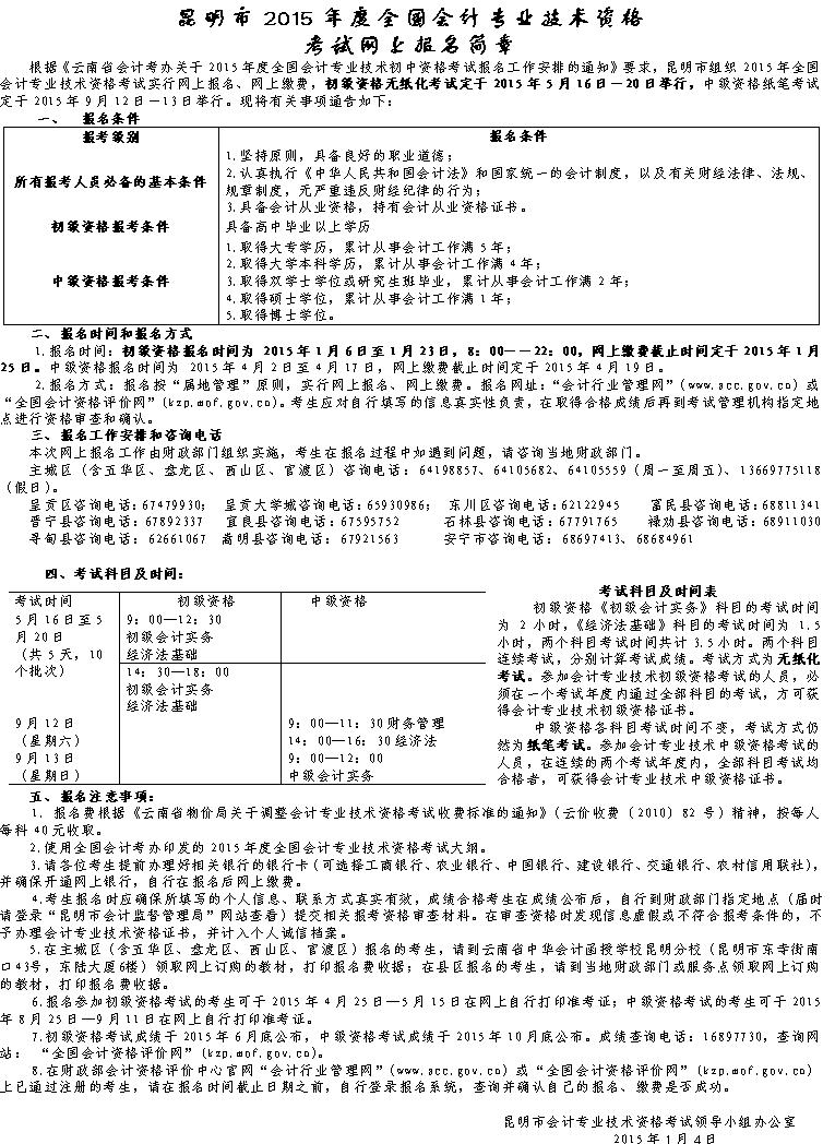 昆明市2015年度全國(guó)會(huì)計(jì)專業(yè)技術(shù)資格考試網(wǎng)上報(bào)名簡(jiǎn)章