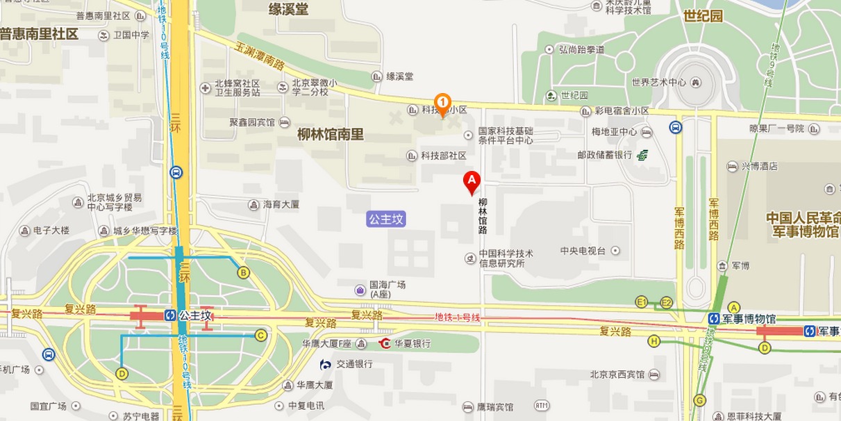 圖中A處為科學(xué)技術(shù)部(海淀區(qū)復(fù)興路乙15號(hào))。