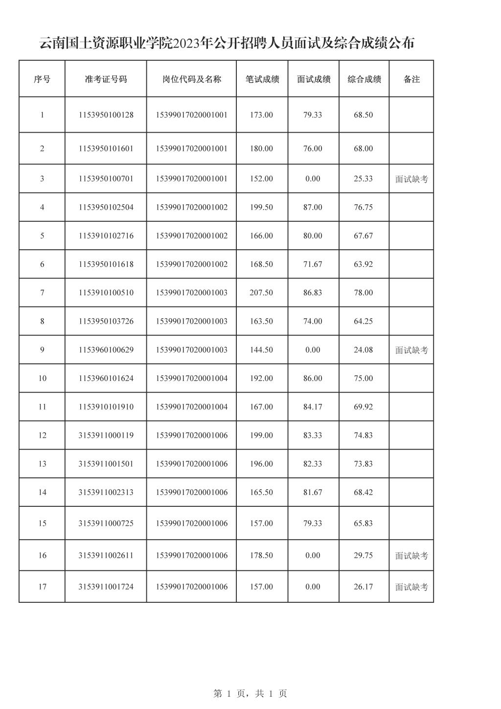 附件:云南國(guó)土資源職業(yè)學(xué)院2023年公開(kāi)招聘人員面試及綜合成績(jī)公布