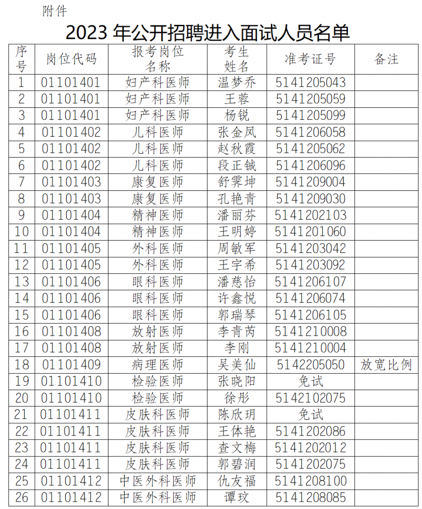 附件:2023年公開(kāi)招聘進(jìn)入面試人員名單