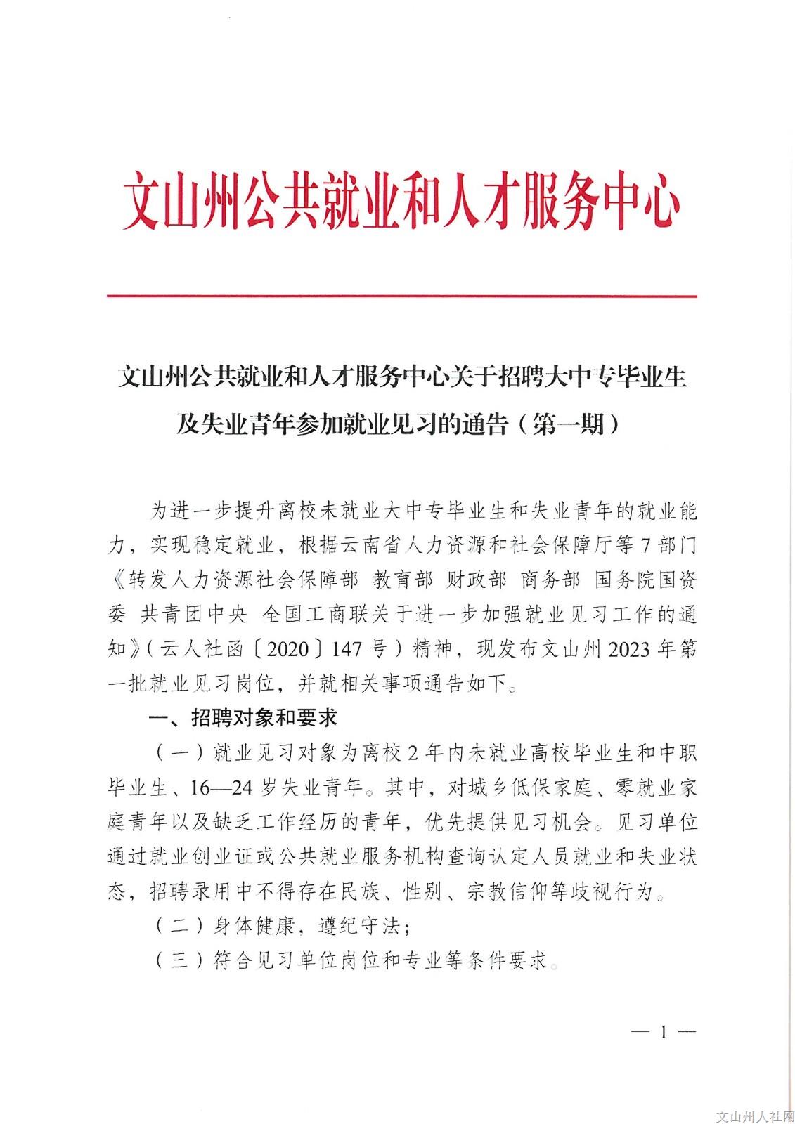 關(guān)于招聘大中專(zhuān)畢業(yè)生及失業(yè)青年參加就業(yè)見(jiàn)習(xí)的通告(第一期)