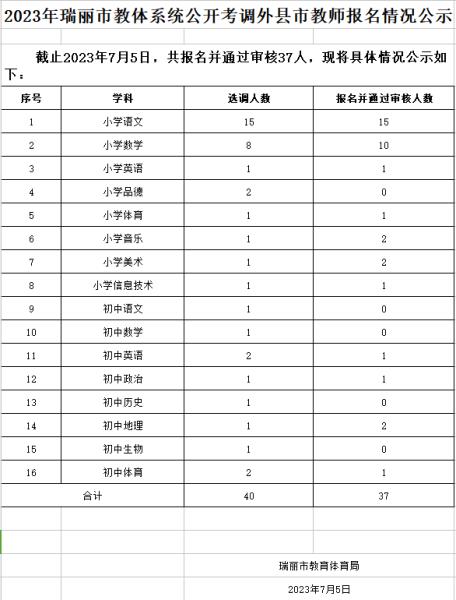 2023年德宏州瑞麗市教體系統(tǒng)考調(diào)外縣市教師報名情況公示