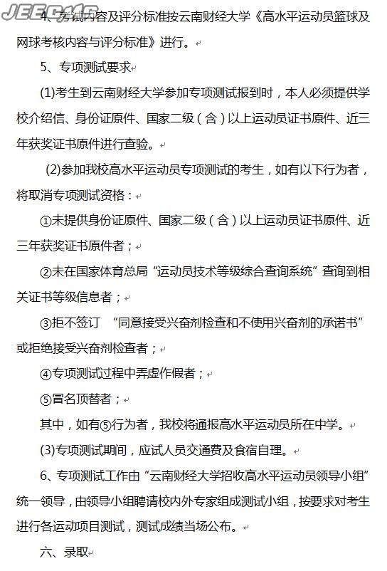 云南財(cái)經(jīng)大學(xué)高水平運(yùn)動(dòng)員籃球及網(wǎng)球考核內(nèi)容與評(píng)分標(biāo)準(zhǔn)