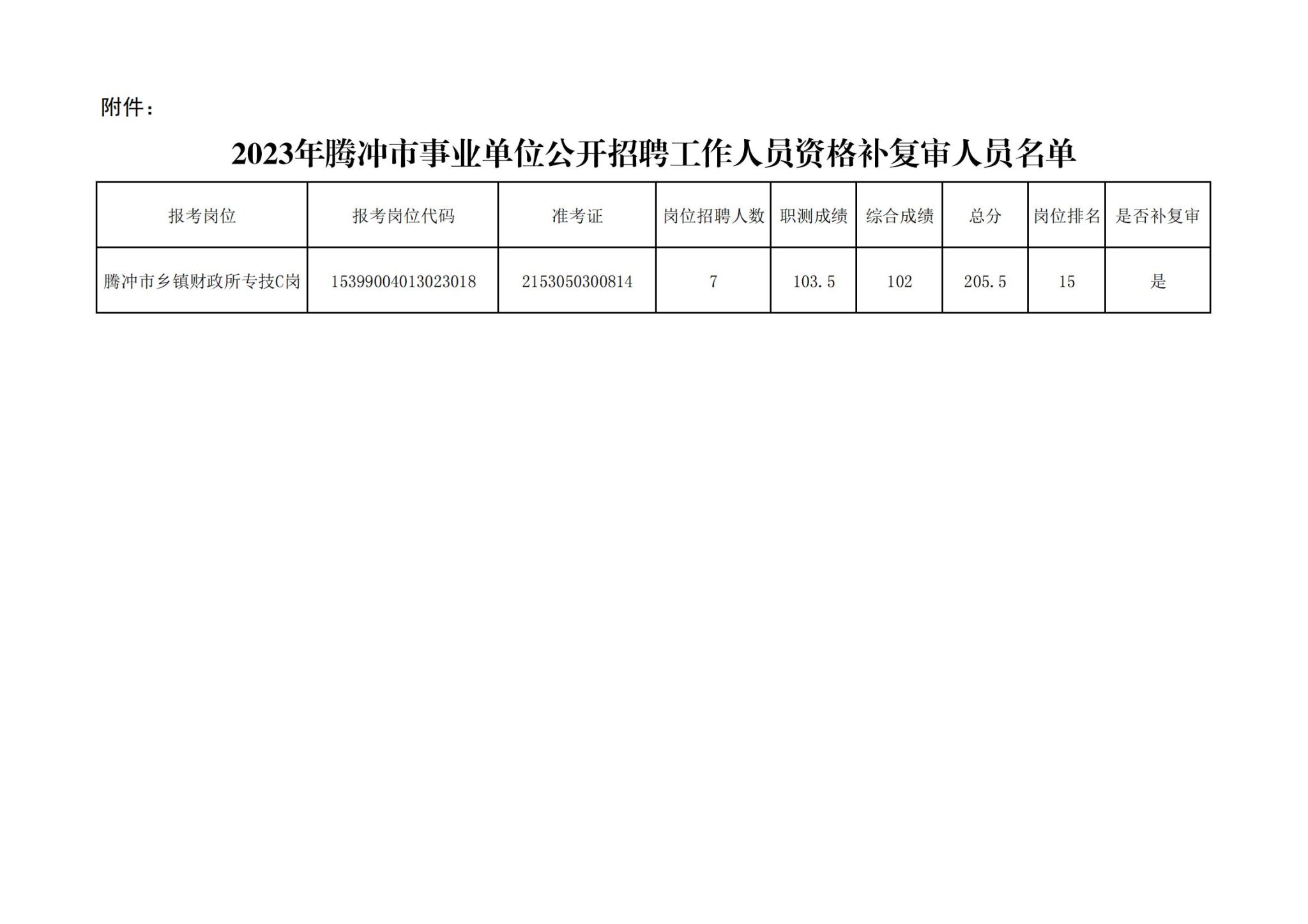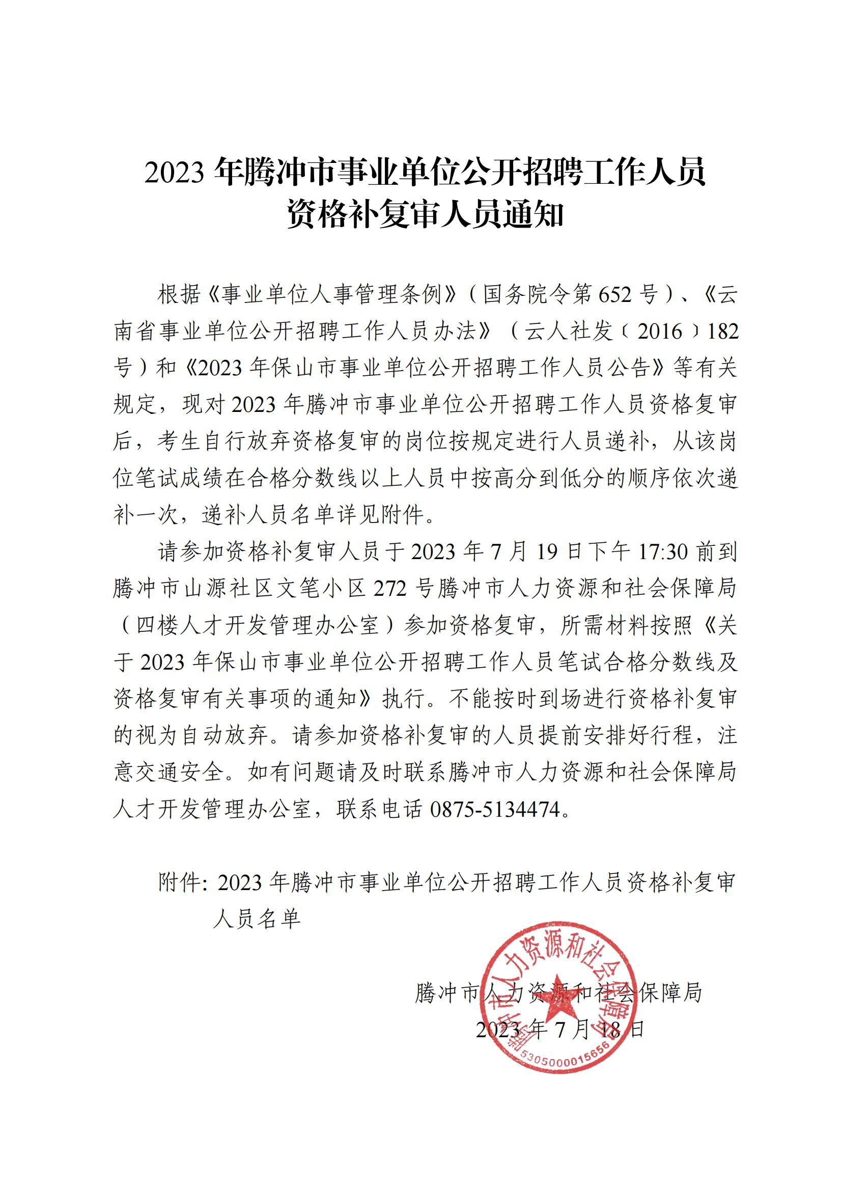 2023年騰沖市事業(yè)單位招聘工作人員資格補復(fù)審人員通知