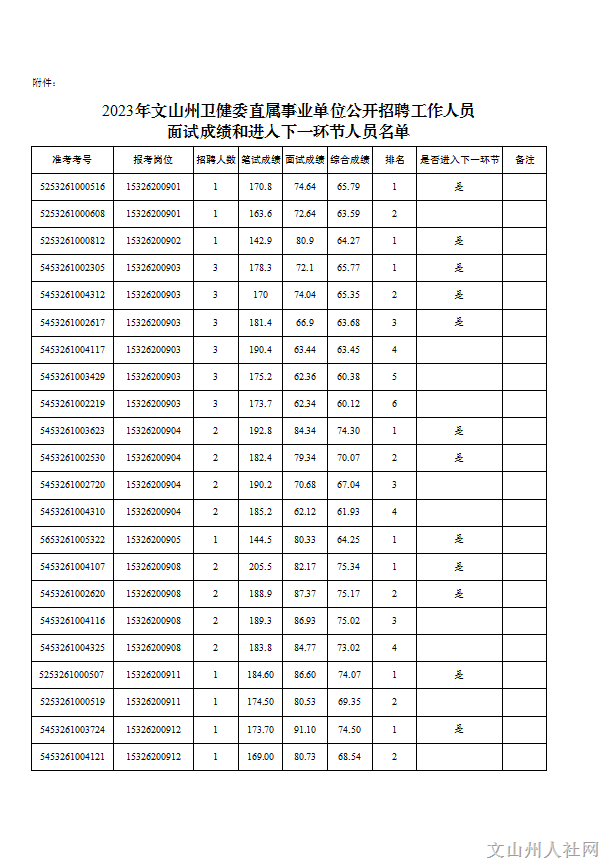 2023年文山州衛(wèi)健委直屬事業(yè)單位公開招聘工作人員面試成績(jī)及后續(xù)有關(guān)事項(xiàng)通告