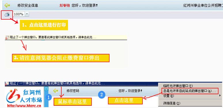 完成以上操作后,再進(jìn)入詳細(xì)信息頁,點(diǎn)擊打印圖標(biāo)(在此,可能瀏覽器會(huì)阻止彈出打印窗口,那么請(qǐng)按下圖步驟操作);