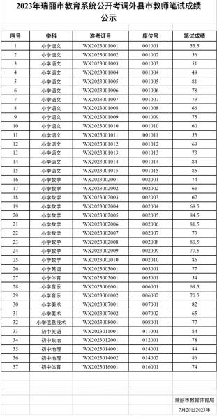 [附件:2023年瑞麗市教育系統(tǒng)公開考調外縣市教師筆試成績公示]