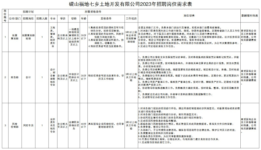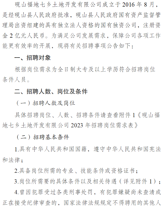 硯山福地七鄉(xiāng)土地開(kāi)發(fā)有限公司2023年公開(kāi)招聘工作人員的公告