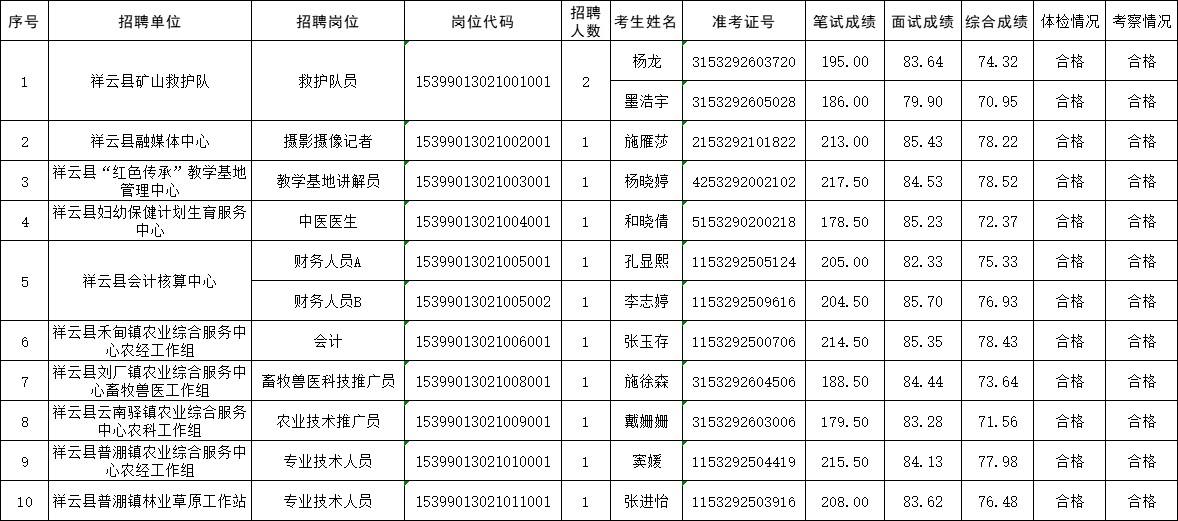 祥云縣2023年事業(yè)單位公開招聘工作人員擬聘用人員公示