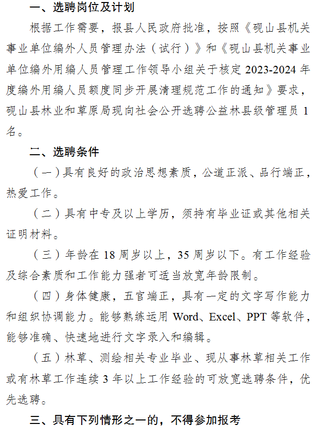 硯山縣林業(yè)和草原局公開選聘空缺公益林縣級(jí)管理員公告