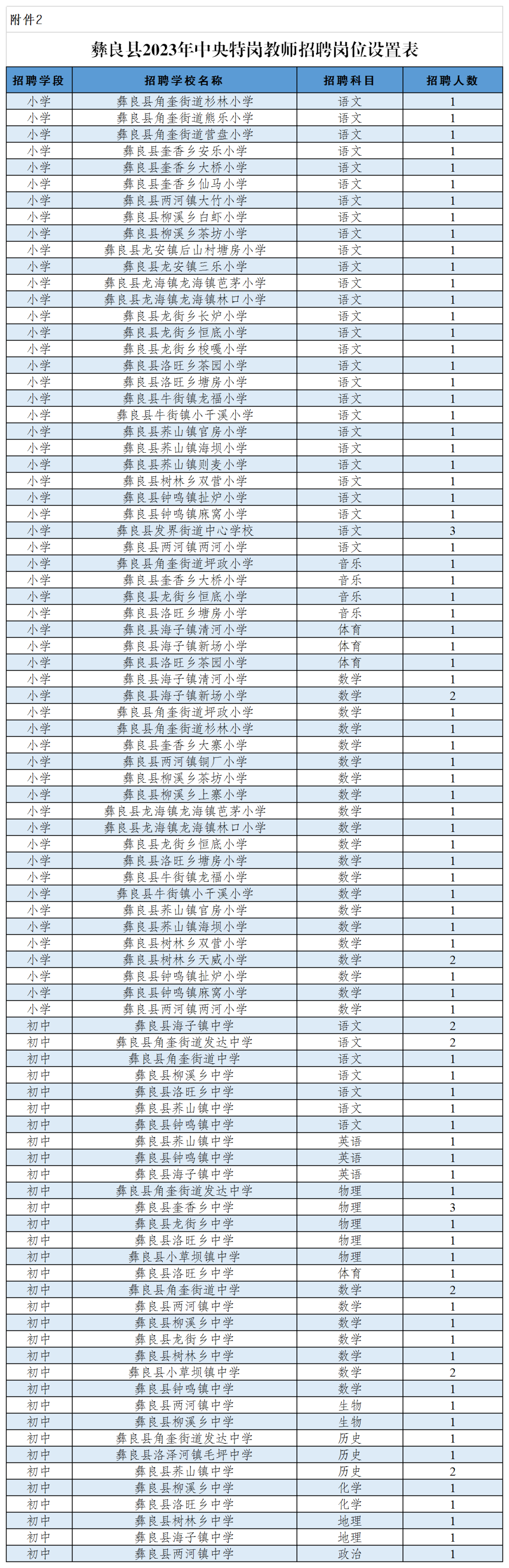 2.彝良縣2023年中央特崗教師招聘崗位設(shè)置表