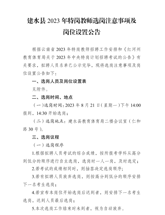 建水縣2023年特崗教師選崗注意事項(xiàng)及崗位設(shè)置