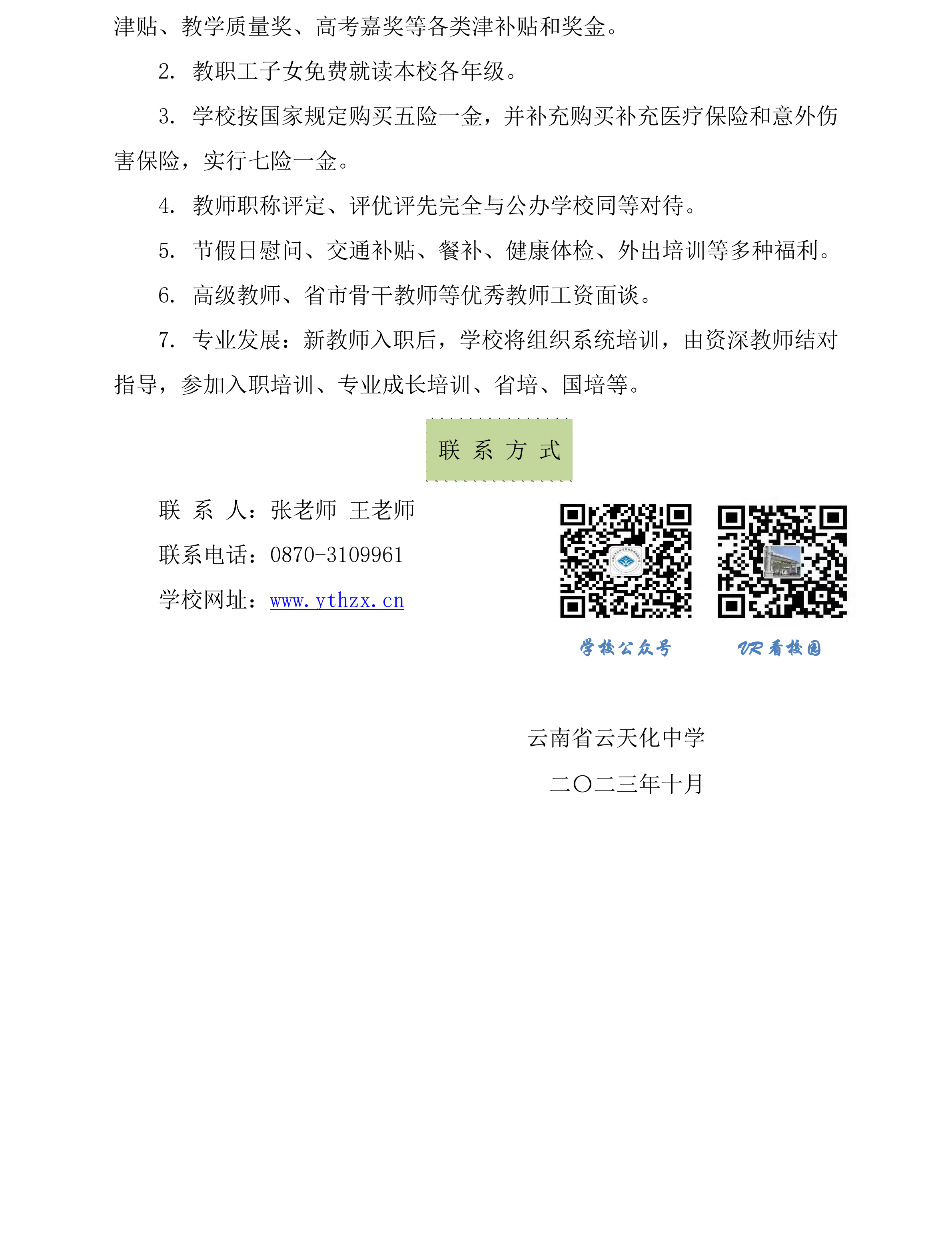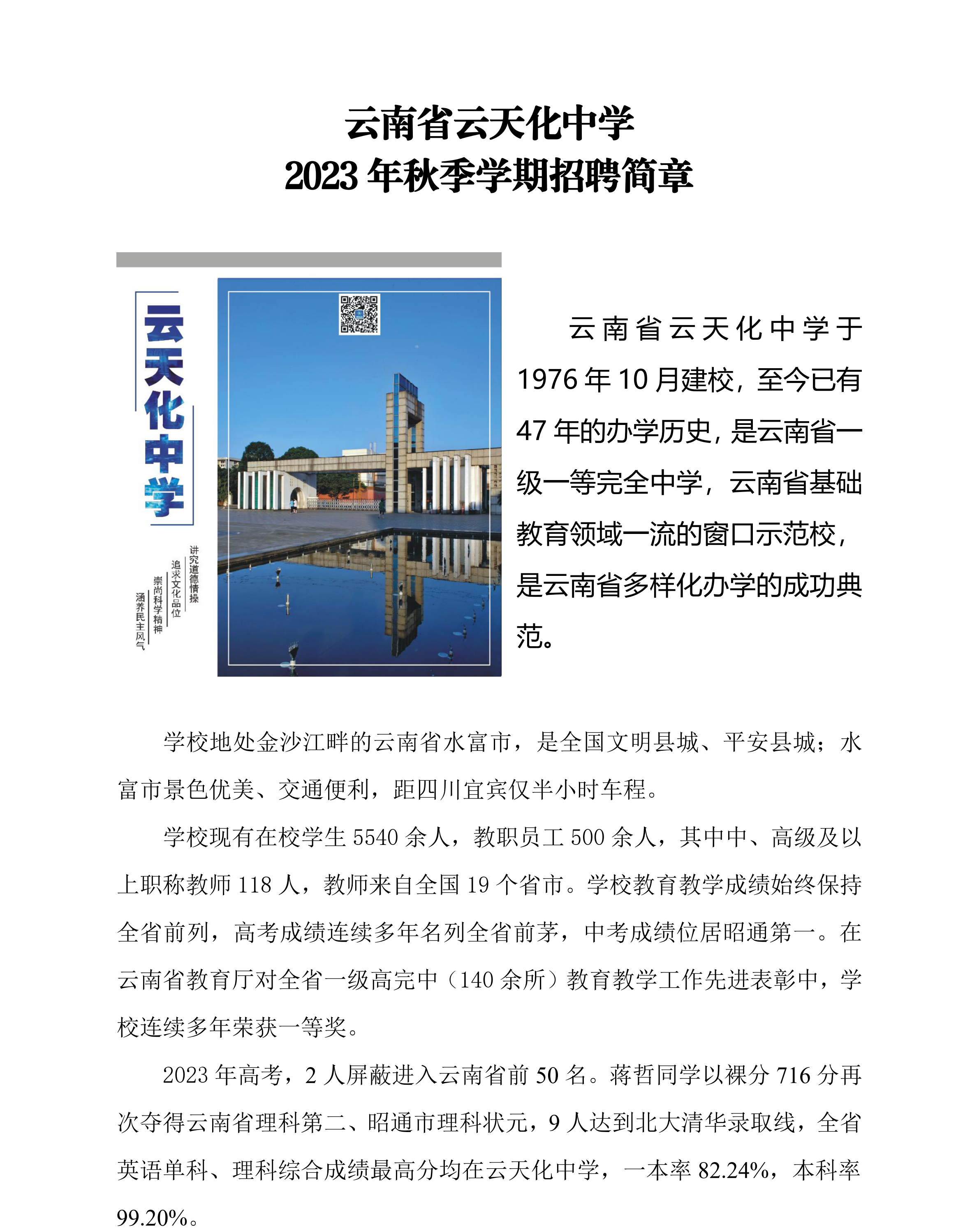 云南省云天化中學(xué)2023年秋季學(xué)期招聘簡(jiǎn)章