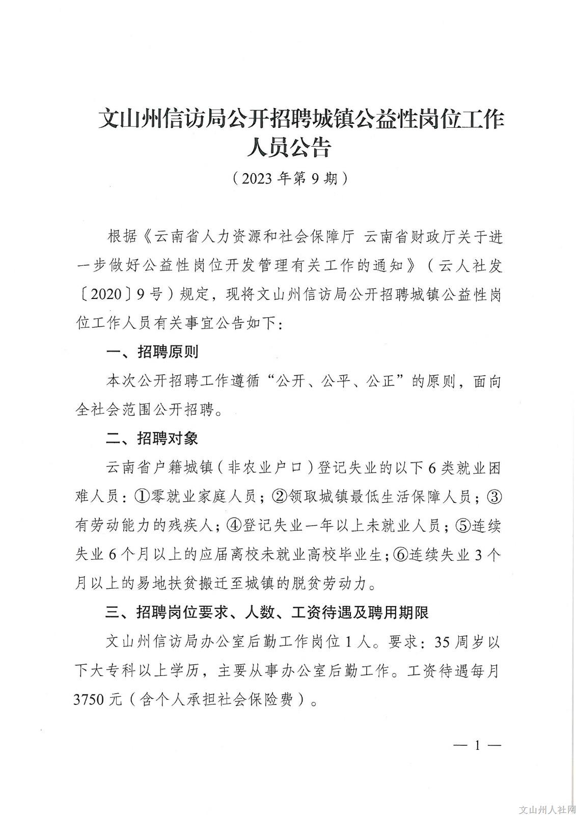 文山州信訪局公開(kāi)招聘城鎮(zhèn)公益性崗位工作人員公告