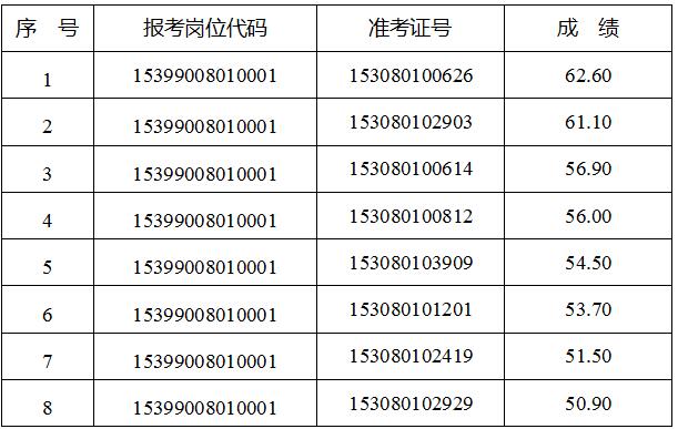 (三)資格復(fù)審人員:按照成績由高到低的順序,等額確定進(jìn)入資格復(fù)審人員名單(詳見附件)。