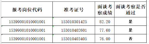 2023年10月29日下午14:30-16:30,宜良縣對第三輪遞補(bǔ)人員開展資格復(fù)審,由于出現(xiàn)考生筆試成績并列,且均不符合“同等條件優(yōu)先錄用”的情形,按照《云南省2023年社區(qū)(村)基層治理專干招聘公告》要求,采取面談考察方式確定進(jìn)入體檢人選。現(xiàn)將宜良縣2023年社區(qū)(村)基層治理專干招聘面談考察成績公告如下: