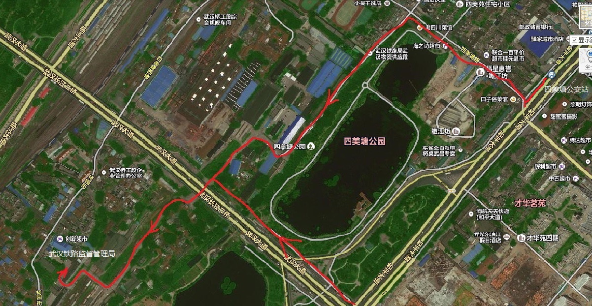 由和平大道四美塘公交車站步行前往武漢鐵路監(jiān)督管理局路線