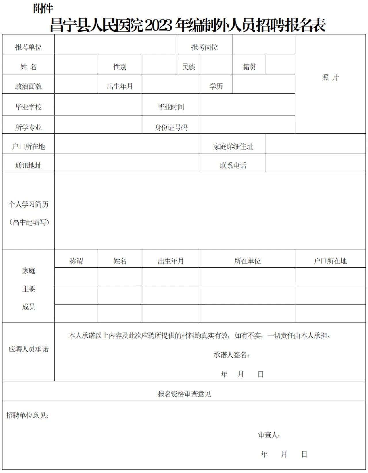 附件:昌寧縣人民醫(yī)院2023年編制外人員招聘報名表