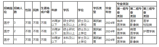 高等院校醫(yī)學(xué)類本科及以上學(xué)歷畢業(yè)后直接參加國家計(jì)劃內(nèi)住院醫(yī)師規(guī)范化培訓(xùn),2024年國家住院醫(yī)師規(guī)范化培訓(xùn)合格且具有國家執(zhí)業(yè)醫(yī)師資格,參加醫(yī)療衛(wèi)生行業(yè)招聘醫(yī)學(xué)類崗位的,視為2024年度應(yīng)屆畢業(yè)生(資格復(fù)審時(shí)須提供成績單、合格證明,否則取消聘用資格)。