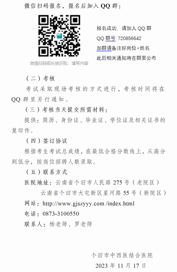 個(gè)舊市中西醫(yī)結(jié)合醫(yī)院編制外工作人員招聘公告