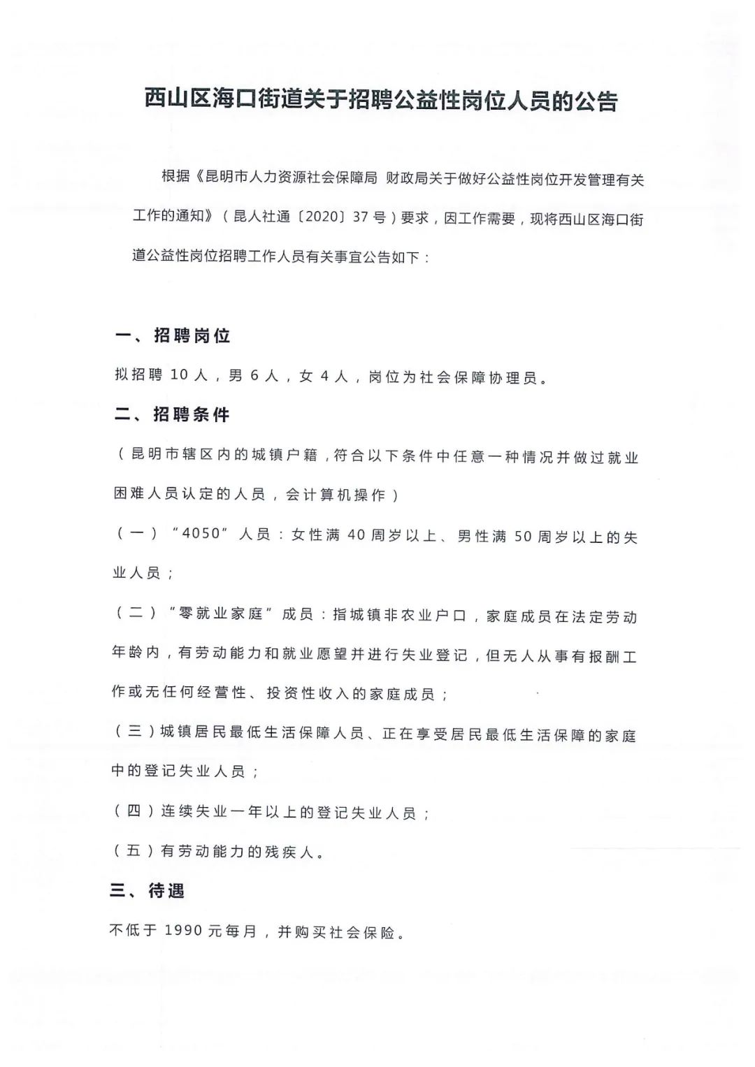 西山區(qū)??诮值狸P(guān)于招聘公益性崗位人員的公告