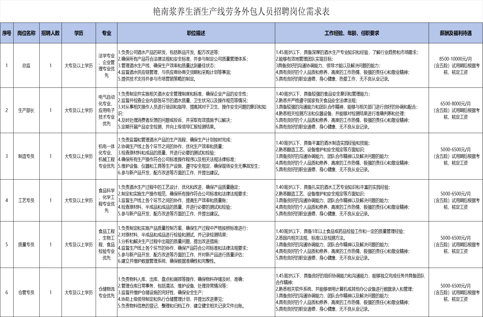 薪酬待遇詳見崗位需求表。