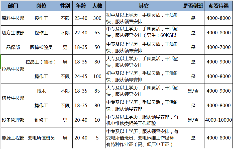 曲靖陽光新能源股份有限公司招聘