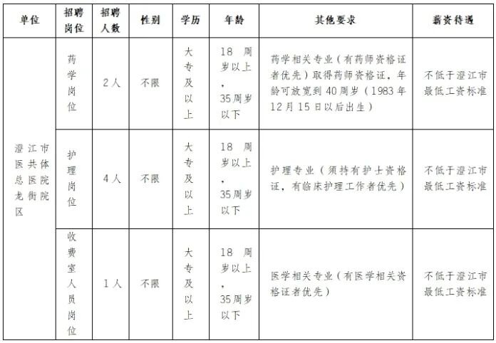 澄江市醫(yī)共體總醫(yī)院龍街院區(qū)因工作需要,委托澄江市啟澄人力資源有限責任公司面向社會公開招聘編外人員7人,現(xiàn)將有關事項公告如下: