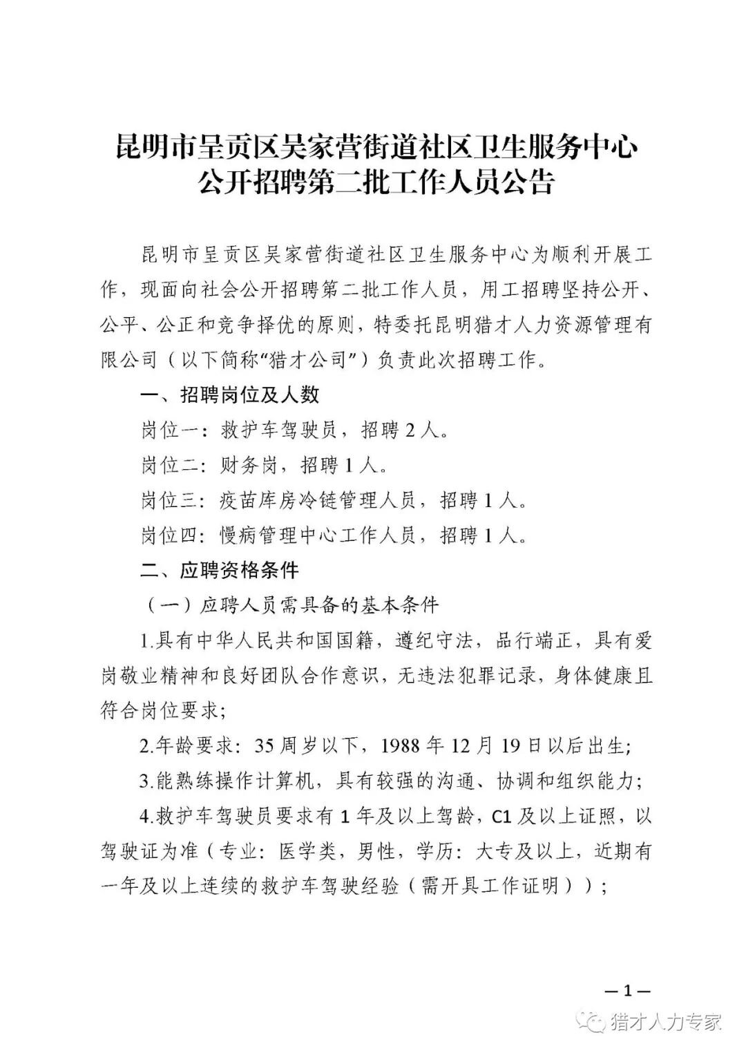 2023年昆明市呈貢區(qū)吳家營街道社區(qū)衛(wèi)生服務中心招聘第二批工作人員公告