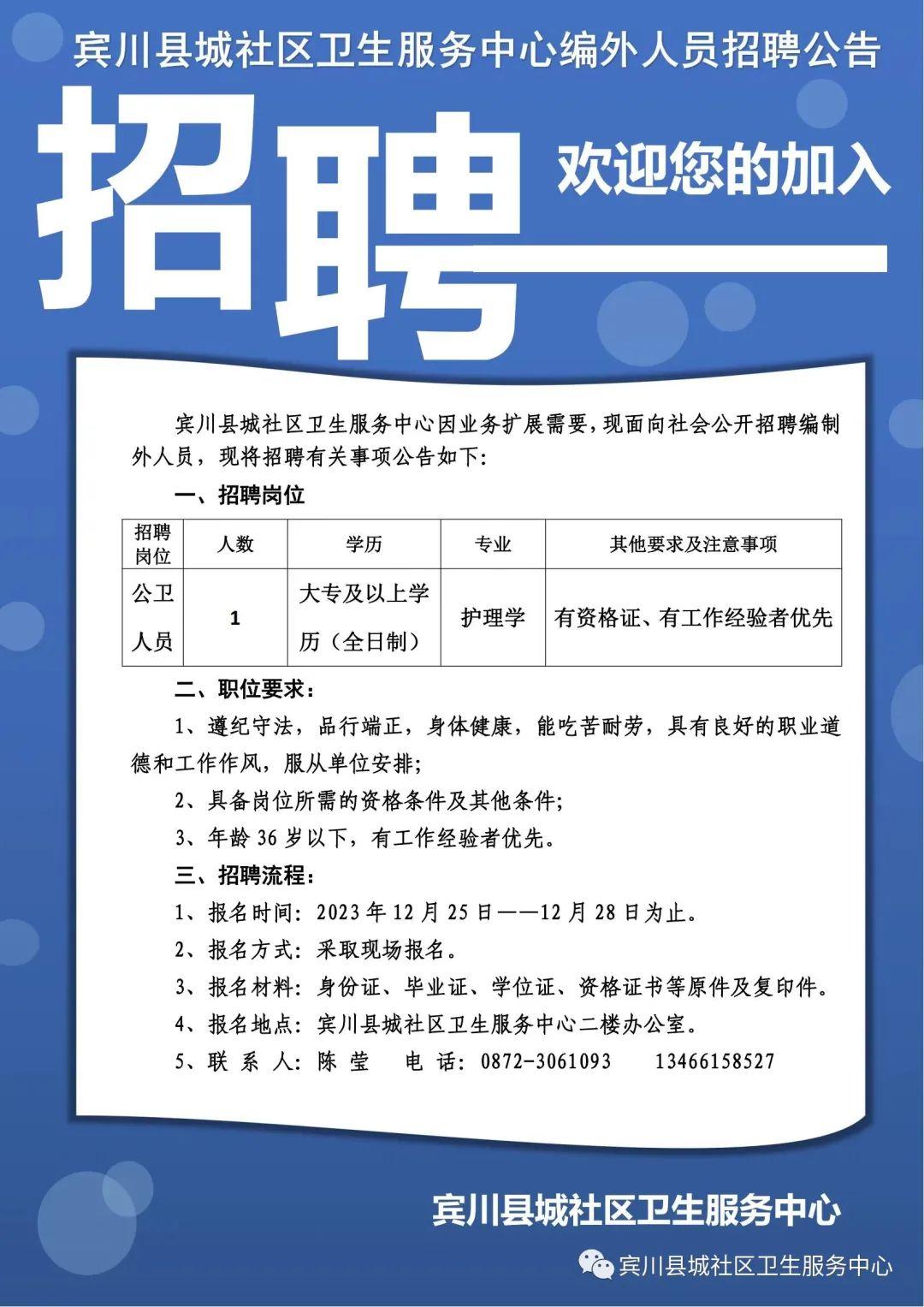 2023年大理州賓川縣城社區(qū)衛(wèi)生服務(wù)中心編外人員招聘公告