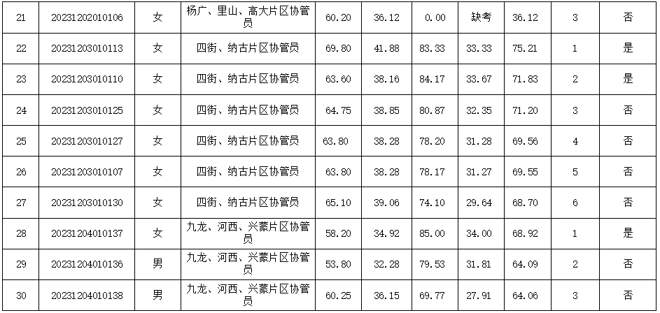 現(xiàn)將通海縣衛(wèi)生健康局衛(wèi)生監(jiān)督局2023年衛(wèi)生監(jiān)督協(xié)管員招聘綜合成績公布及體檢通知如下: