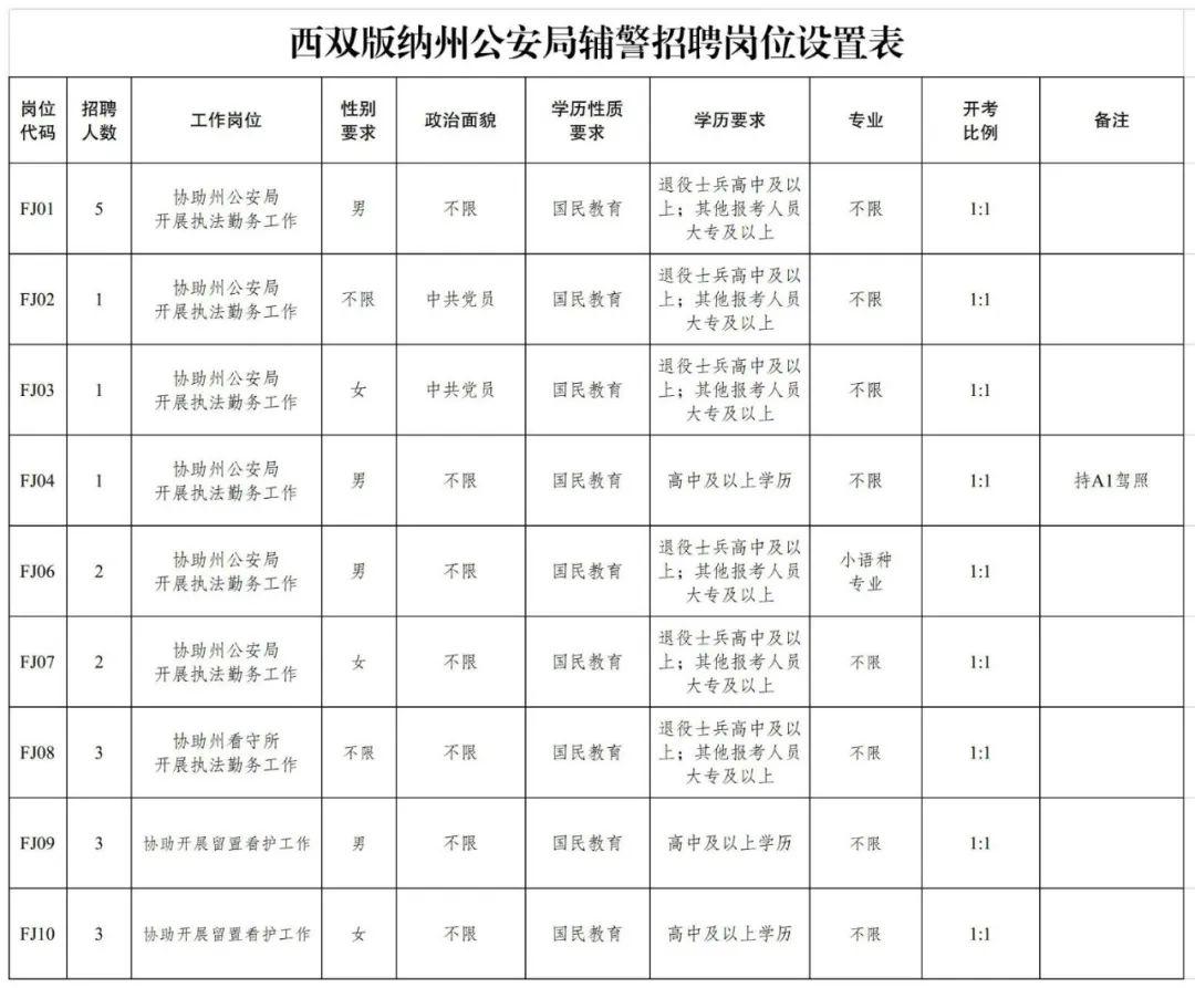 根據(jù)工作需要,西雙版納州公安局現(xiàn)面向社會(huì)公開(kāi)招聘警務(wù)輔助人員(以下簡(jiǎn)稱輔警),有關(guān)事項(xiàng)公告如下: