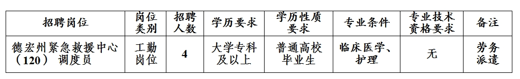 德宏州緊急救援中心公開招聘勞務(wù)派遣制調(diào)度員公告