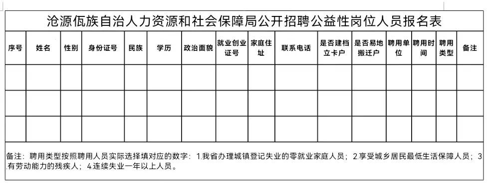 (二)報(bào)名地點(diǎn):滄源佤族自治縣人力資源和社會(huì)保障局三樓辦公室