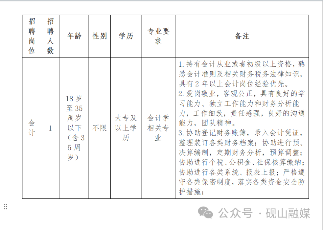 一、 招聘崗位及人數(shù) 會計人員1名。