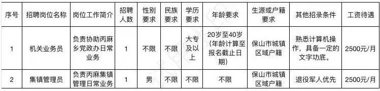 3. 報(bào)名地點(diǎn):丙麻鄉(xiāng)人民政府組織辦(隆陽(yáng)區(qū)丙麻鄉(xiāng)丙麻街丙麻鄉(xiāng)人民政府辦公樓3樓);報(bào)名郵箱:2398017077@qq.com。